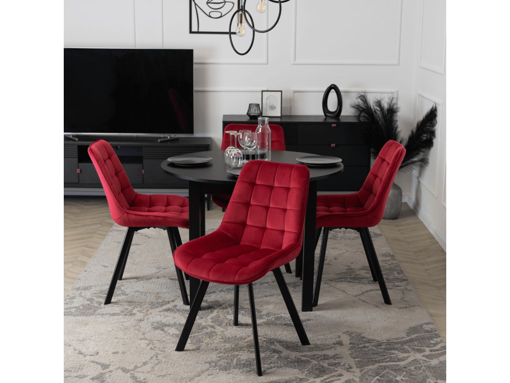 Blagovaonska stolica Rick, materijal: velur, čelik, maksimalna nosivost: 120 kg, boja nogu: crna, boja: crveno