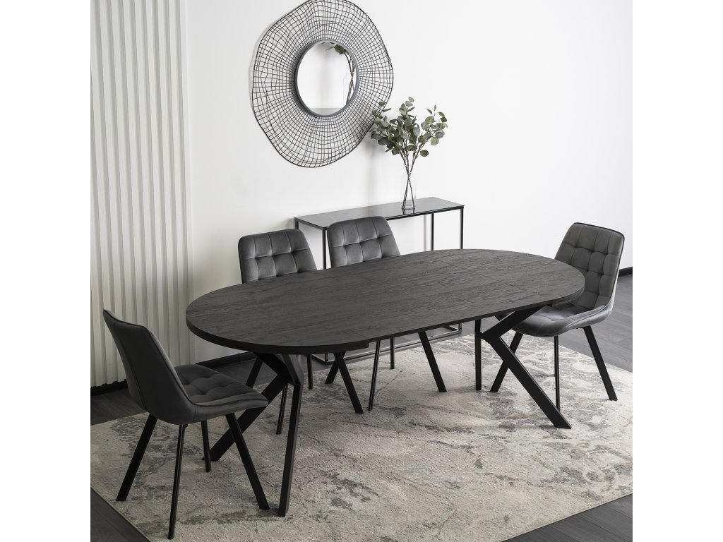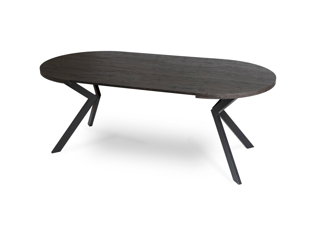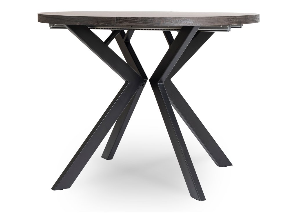 Okrugli stol na rasklapanje LUKAS, crni hrast, materijal MDF ploča, materijal konstrukcije metal, boja konstrukcije crna, boja ploče crna, dimenzije 75 x 100 x 250 cm.
