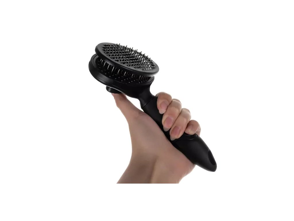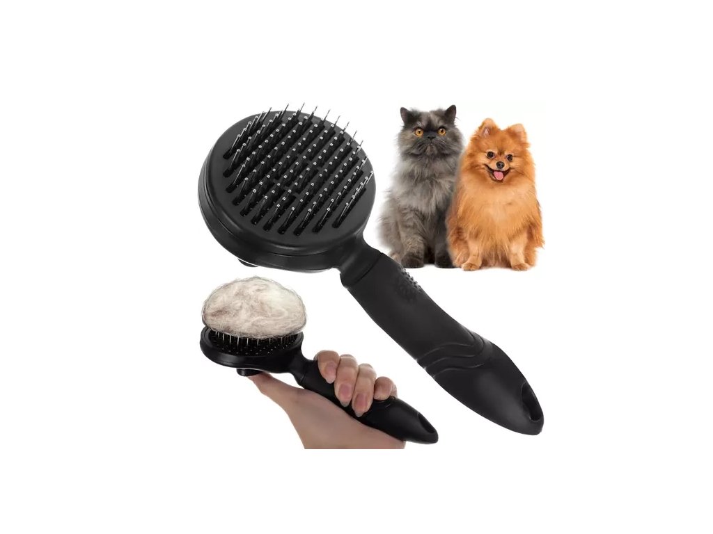 Imate problem s dlakama po stanu, odjeći i neugodnim čišćenjem četke nakon svakog češljanja? Samočisteća četka za psa i mačku omogućuje brzo, higijensko i jednostavno uklanjanje otpale dlake bez ručnog čupanja iz iglica.