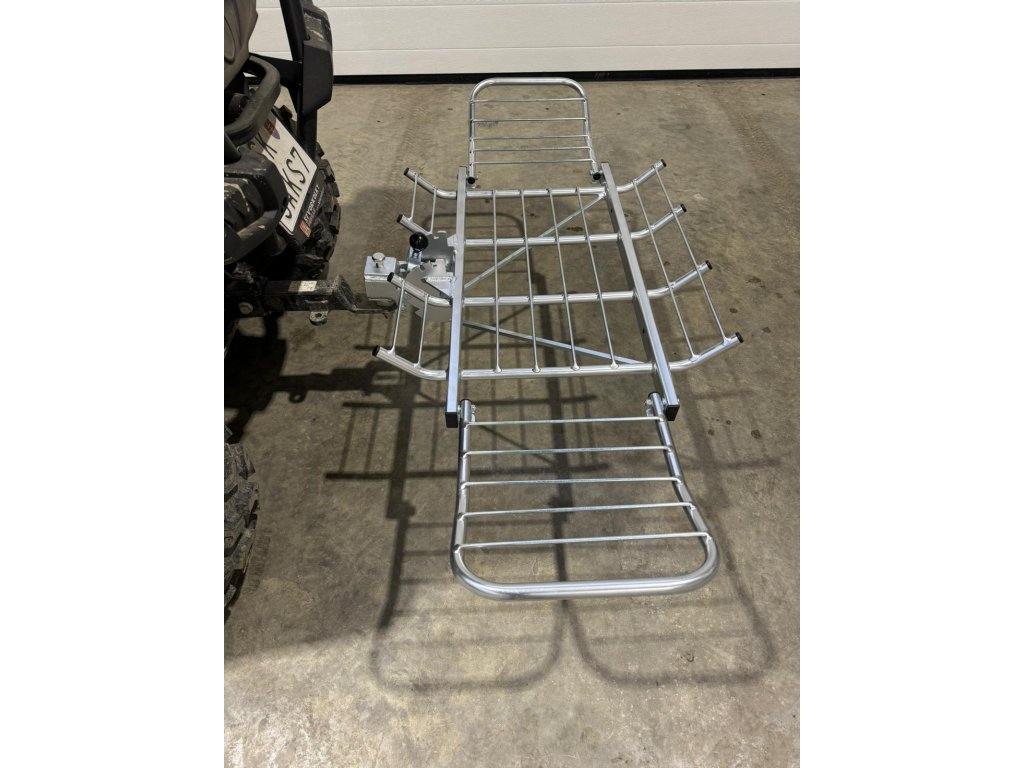 Stražnji nosač za prijevoz divljači, materijal: pocinčani čelik, nosivost: 150 kg, težina: 14,5 kg, sklopljen: 82 x 70 x 20 cm, raširen: 145 x 70 x 20 cm